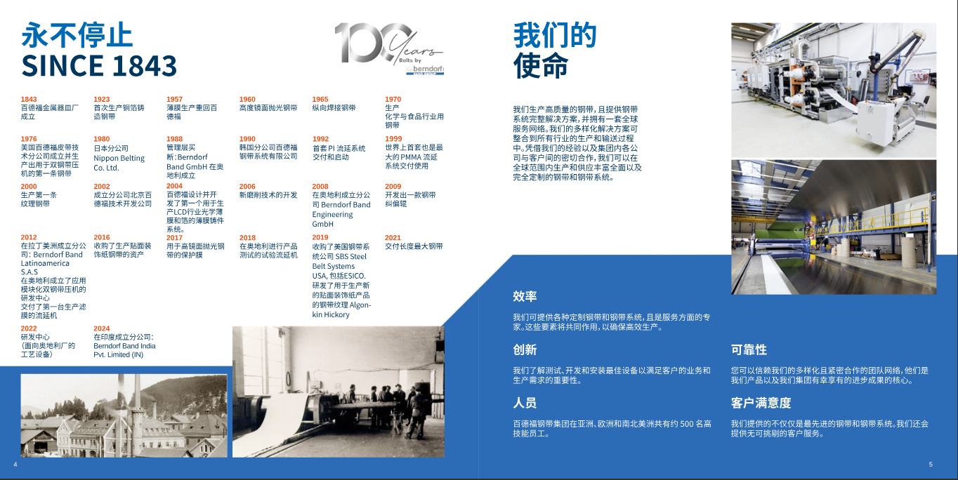 上海羅特鋼帶有限公司現為奧地利百德福鋼帶集團(Berndorf Band Group)全資子公司,奧地利百德福鋼帶集團(Berndorf Band Group)是全球鋼帶和鋼帶系統領域的領軍企業,總部位于奧地利貝恩多夫,業務覆蓋亞洲、歐洲、南北美洲,擁有約 500 名員工,出口率高達 90%。作為擁有百年歷史的「隱形冠軍」,其核心業務包括高精度鋼帶生產、定制化鋼帶系統解決方案及全球技術服務網絡,產品廣泛應用于復合材料、人造板、食品加工、薄膜制造等工業領域。