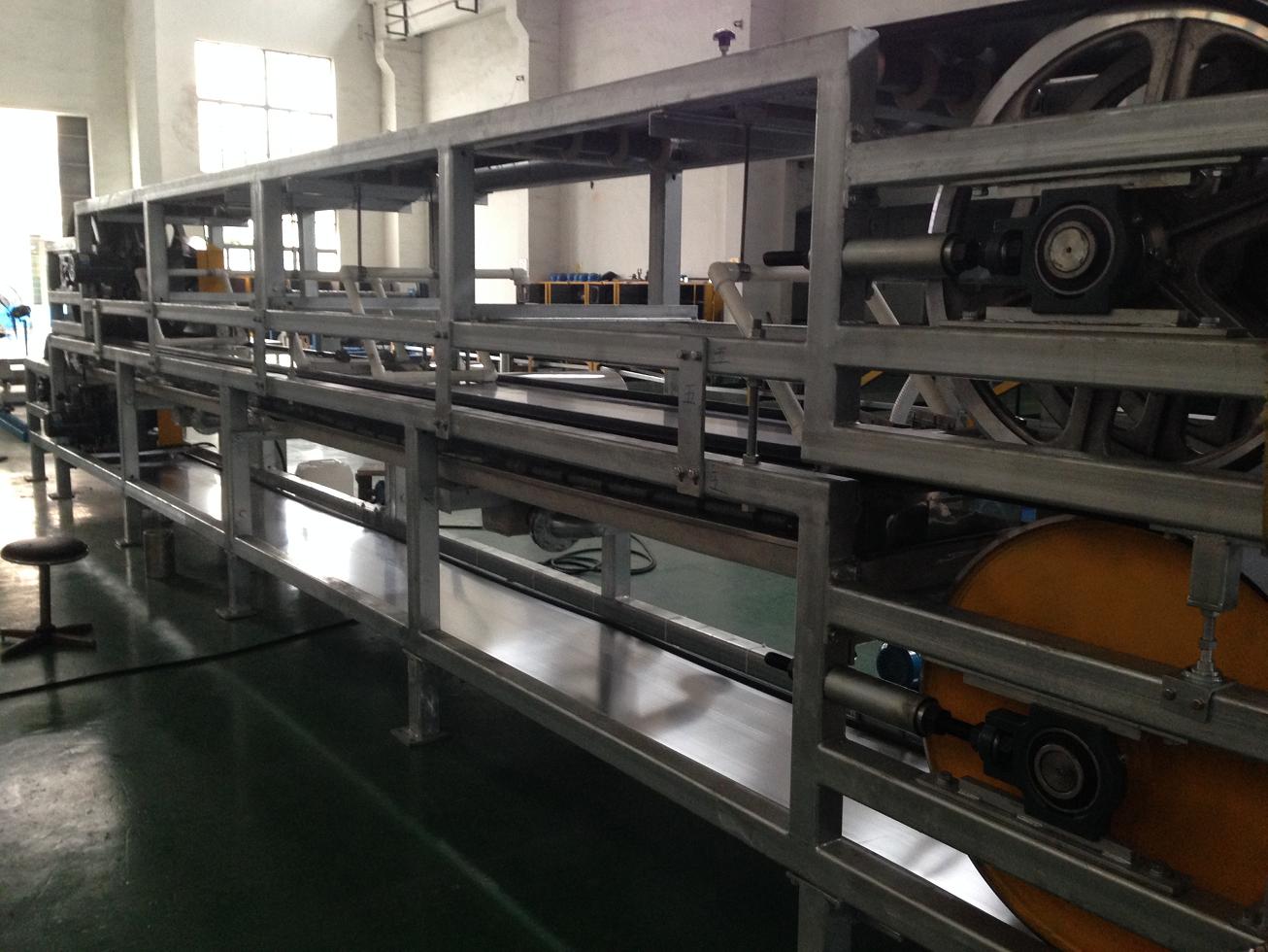 上海羅特鋼帶有限公司制造的食品-膠基雙鋼帶冷卻輸送機出口到委內瑞拉。該冷卻輸送機要求可控制產品厚度,NAUT技術研發人員經不懈努力研發可調節上下鋼帶間隙裝置,能在鋼帶運行中保持產品在冷卻過程中厚度一致性,獲得客戶一次驗收合格。