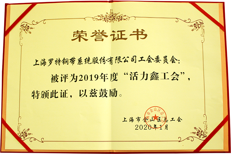 上海羅特鋼帶系統股份有限公司工會被金山區總工會授予2019年度“活力鑫工會”榮譽稱號。