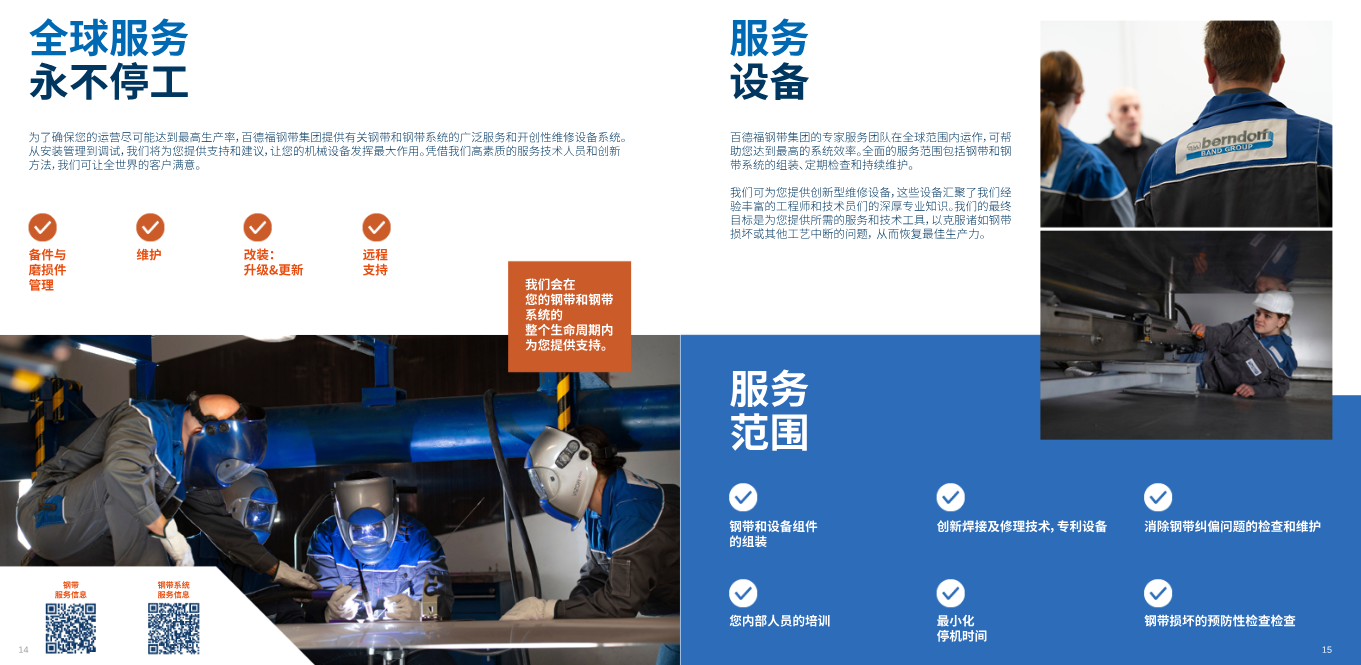 作為全球領軍的鋼帶和鋼帶系統全服務供應商,百德福的核心競爭力體現在“定制化產品+系統解決方案+全生命周期服務”的三位一體模式。集團不僅生產不銹鋼、碳鋼、鈦合金等多種材質的定制化鋼帶,更提供涵蓋工程設計、設備制造、安裝調試、技術培訓的全鏈條服務,其產品和系統廣泛應用于光學薄膜、包裝材料、新能源、生命科學、人造大理石等多個關鍵領域。