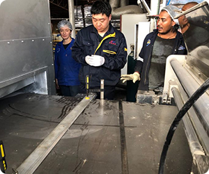 出差的售后服務(wù)員工在客戶現(xiàn)場,用熟練的技術(shù)和一絲不茍的嚴(yán)謹(jǐn)態(tài)度進(jìn)行安裝、維修工作。