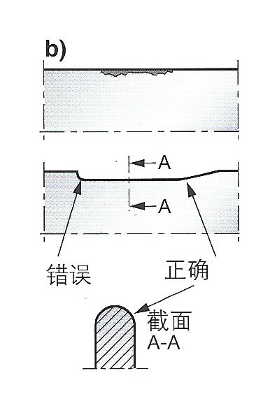 b) 如果邊緣被損壞,則必須將損壞部分切掉,然后用銼刀仔細修整新邊緣使其成圓形。