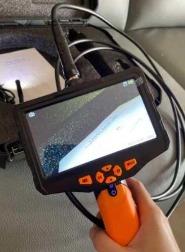 將硬線頭部的攝像頭伸入細(xì)小的孔縫中,通過(guò)手持屏幕實(shí)時(shí)觀察攝像頭所拍到的畫面。 |